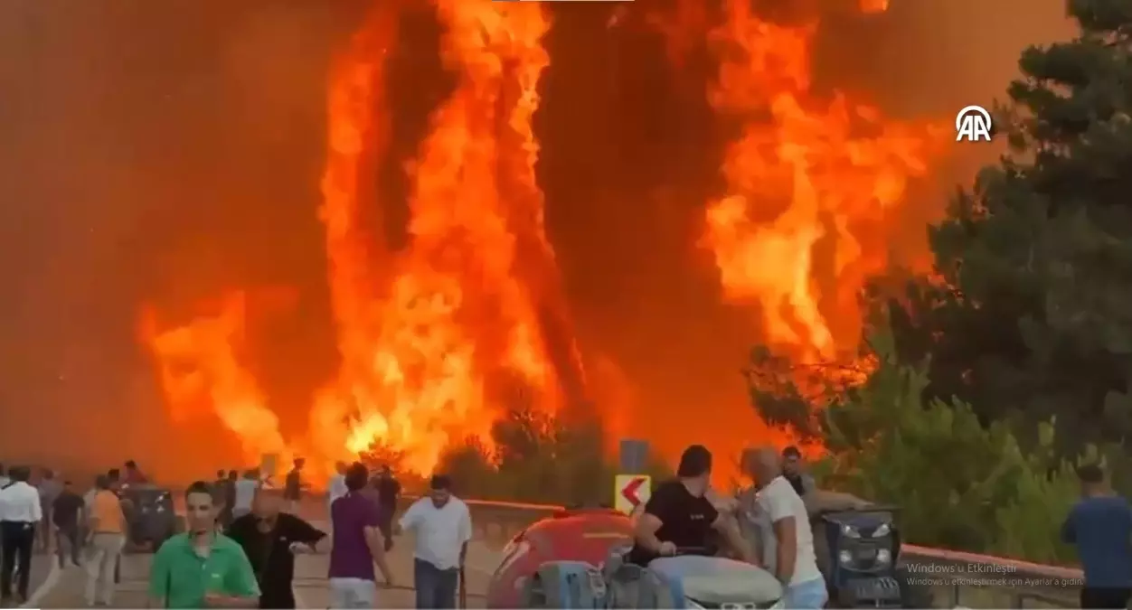 🚨 Alevlerin tam ortasında kalan kaymakam ve belediye başkanının makam araçları son anda kurtarıldı.